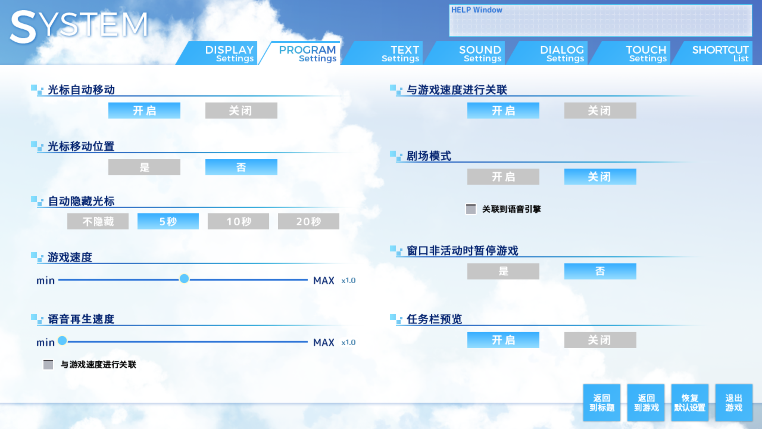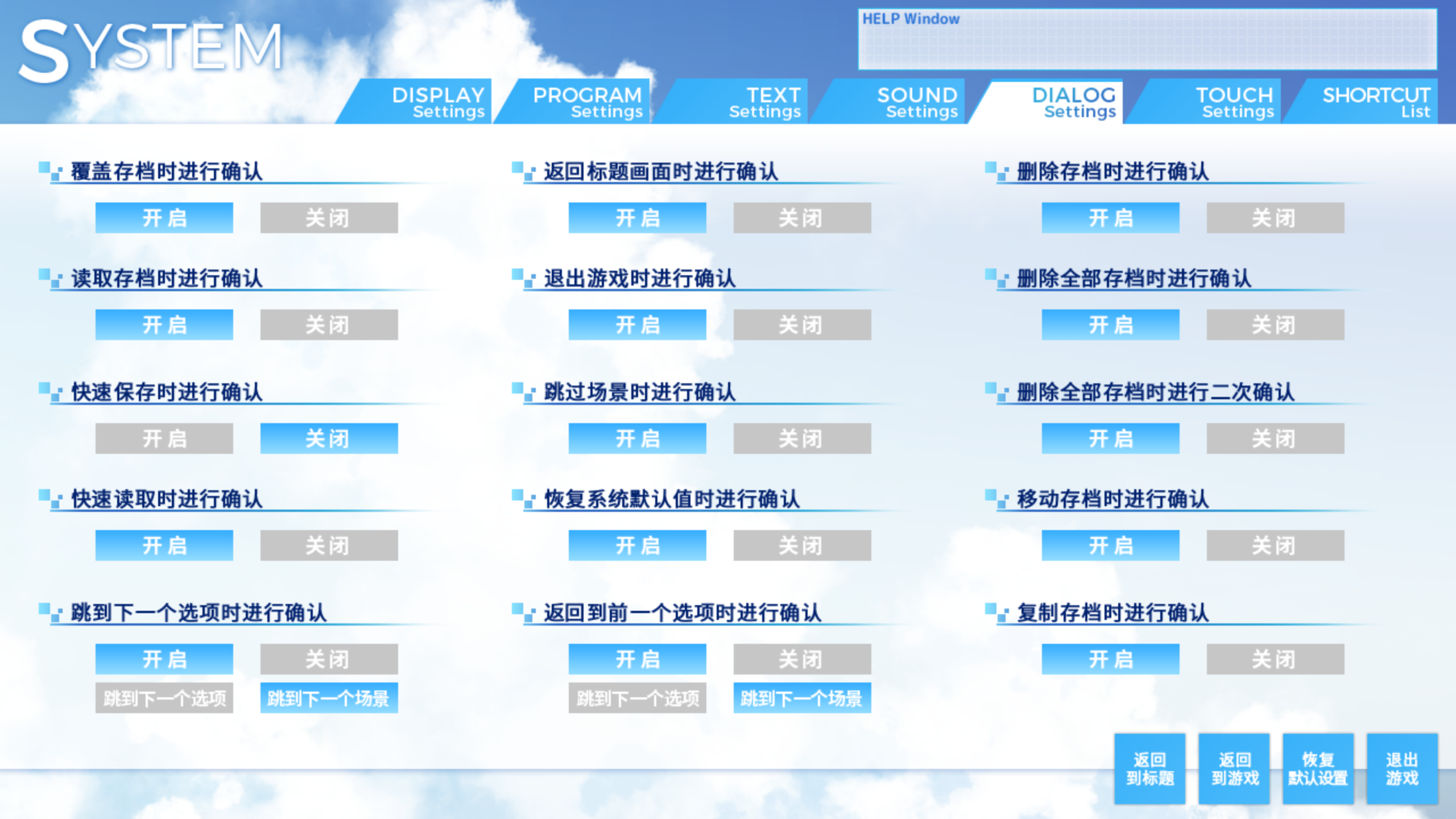 可以看到,kirikiri引擎能够对每个设置进行单独确认,功能非常人性化