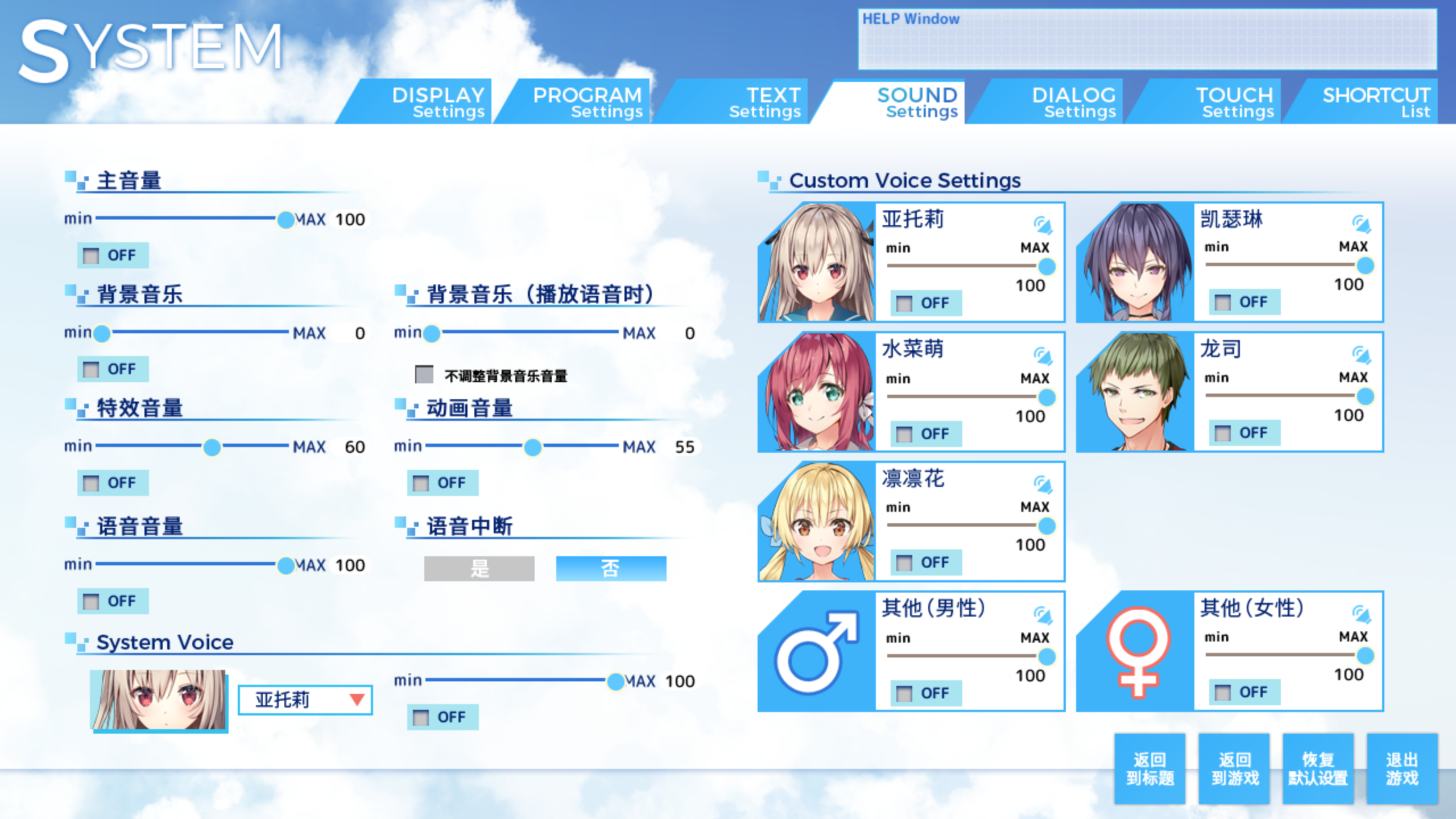 当点击声音设置的时候会播放非常有元气的ATRI的声音(系统语音肯定是选ATRI哒~)
