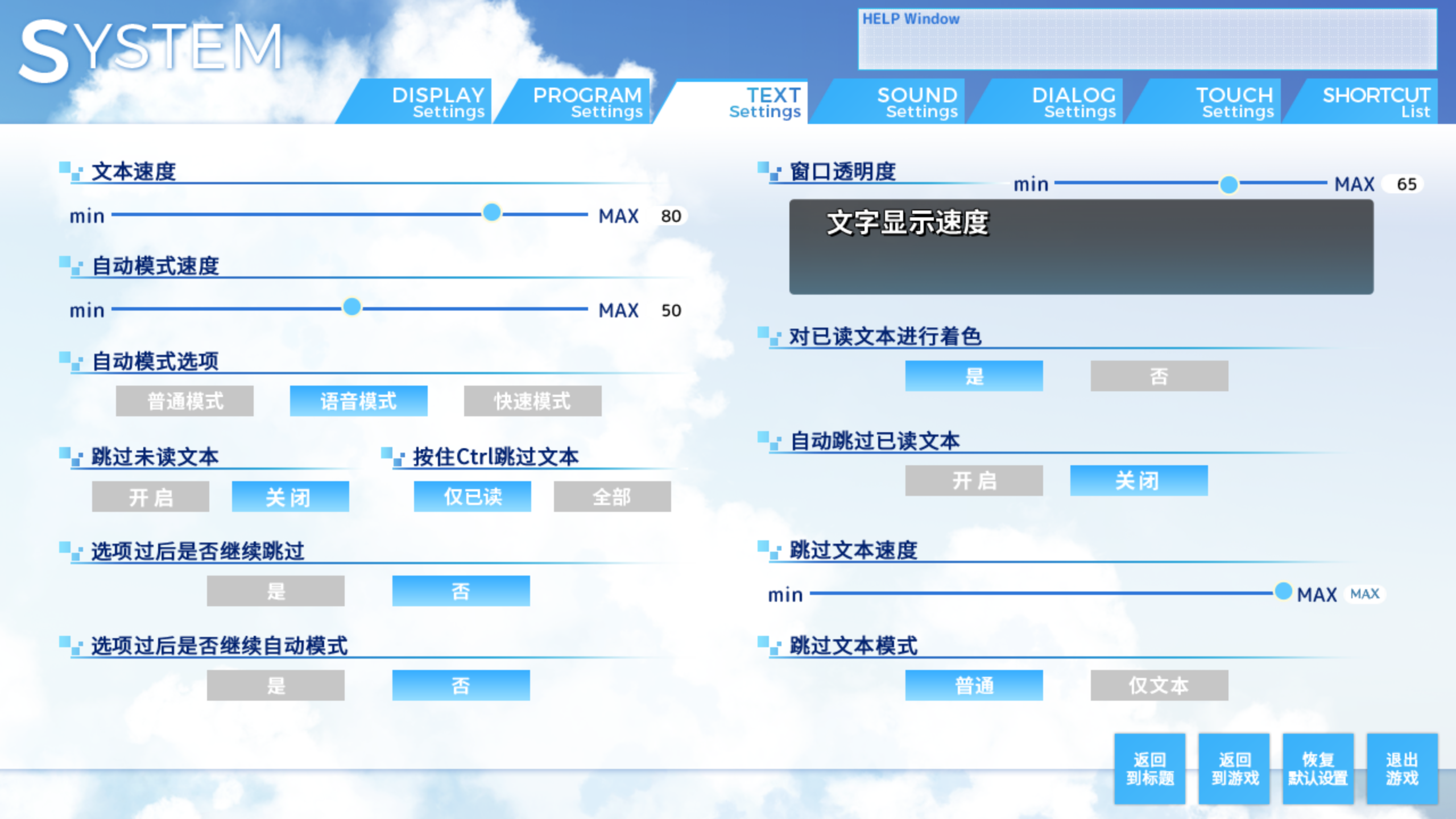 已读未读文本一目了然,精密的文本速度控制,完备的自动模式,甚至能自动跳过已读文本,不愧是高性能的引擎