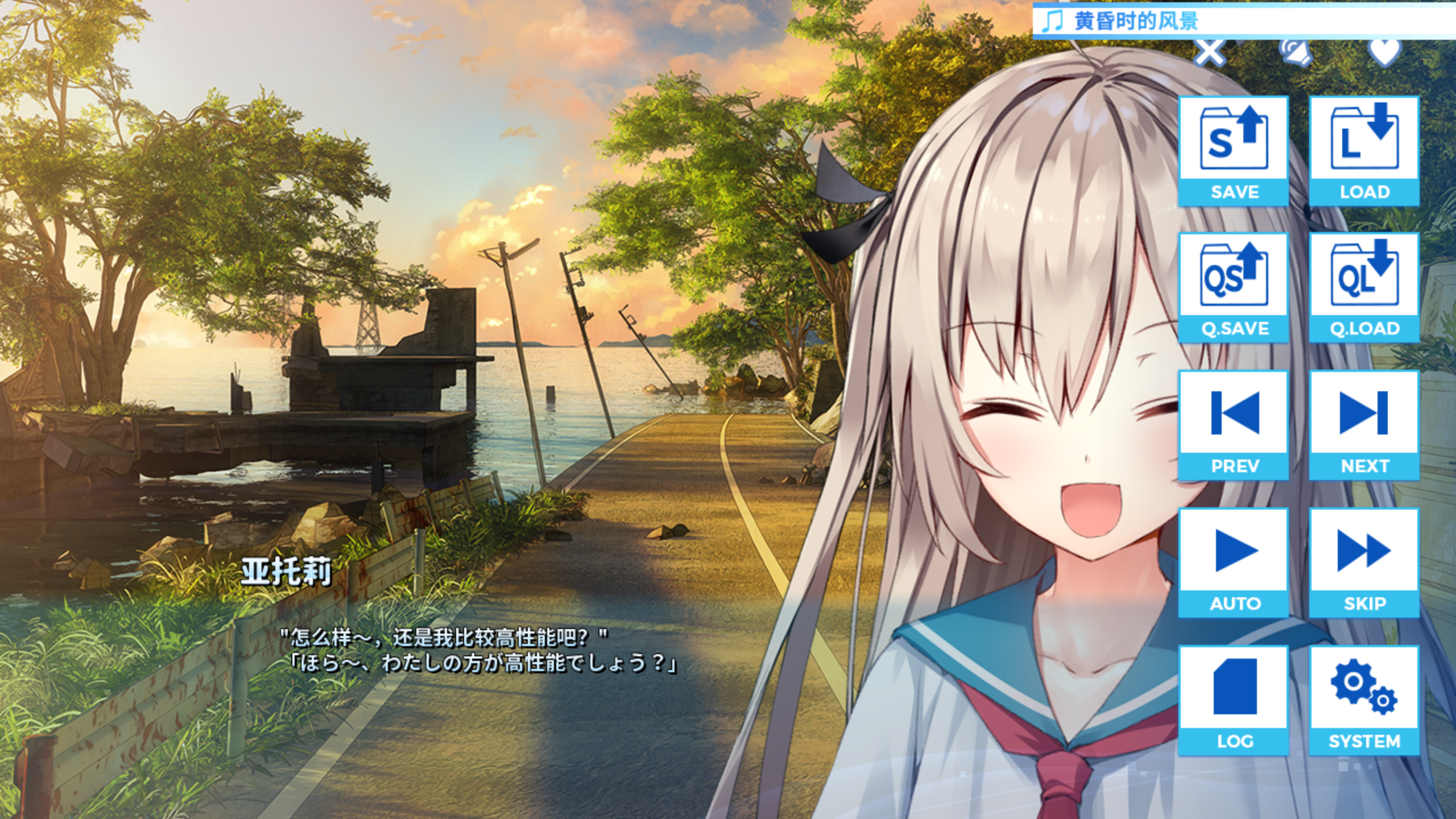 我们可以看到,Kirikiri引擎支持双语显示,带BGM显示,快速存读档等功能一应俱全、一目了然